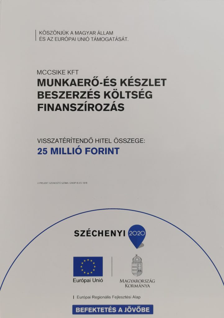 - Projekt tárgya: „Komplex infrastrukturális-, technológiai- és humánerőforrás fejlesztést segítő beruházások és szolgáltatások megvalósítása az Mccsike Kft-nél”